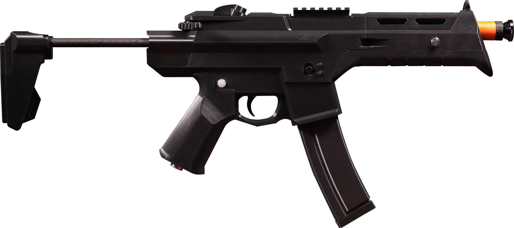 The Blamcon Vyper is a modern submachine lightgun. Under its futuristic styling lies the exact handling of the venerable HK MP5. Featuring the same short-pull 2-stage trigger, the Vyper also sports a Picatinny rail that takes real optics. To enhance gameplay, there’s a D-pad with two option buttons on the side, a working selector, and the ability to pull the mag to reload.