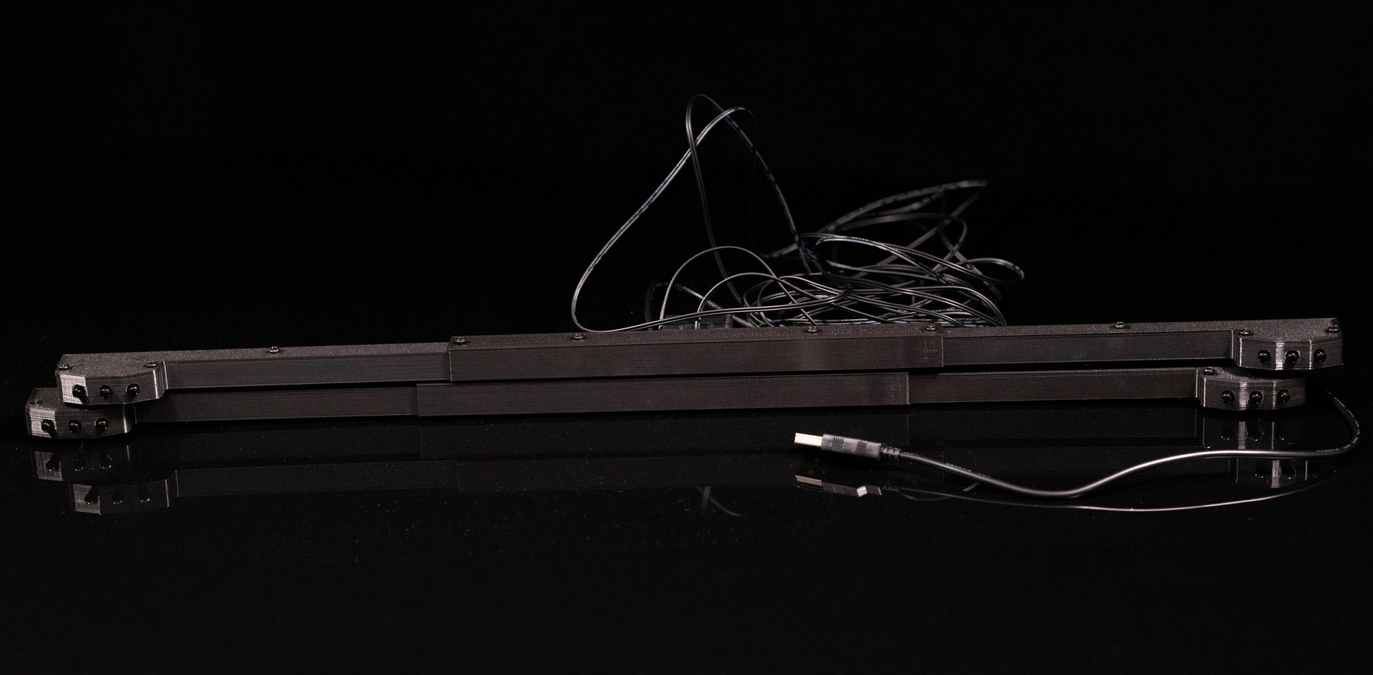 Complete and ready to go Blamcon Light Mega Bar set to mount to the top and bottom of your TV or monitor.
